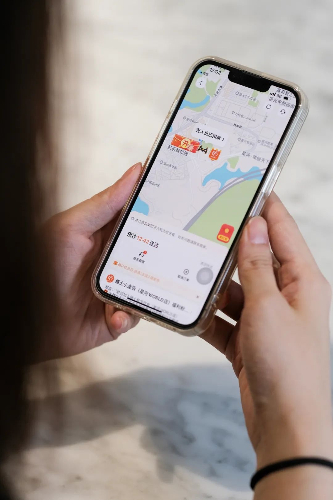 利用5G及人工智能,顾客从美团的App可以追踪到外卖飞行的路线及所需时间,外卖几时到达配送站一目了然。(网上图片)