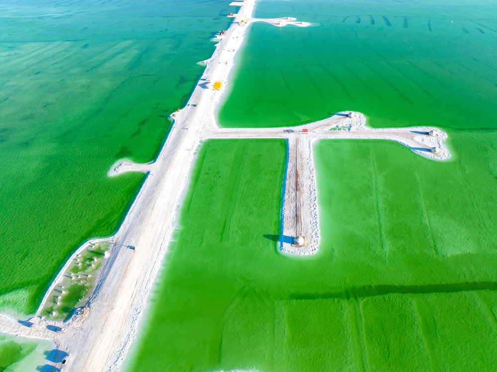 在这里修筑公路的工人,发现湖水苦涩,化验后发现水中含有氯化钾,引发当局重视。