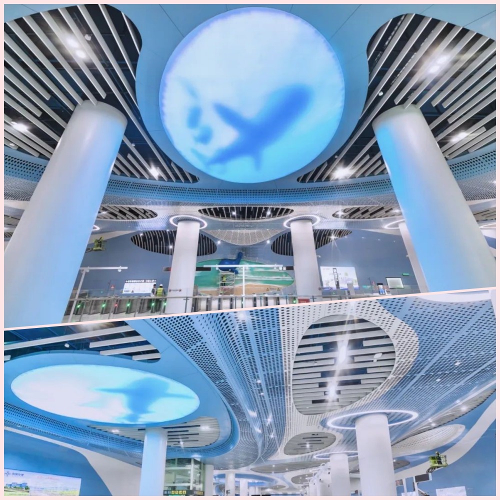 鸿安围站 大堂天花板有亮点