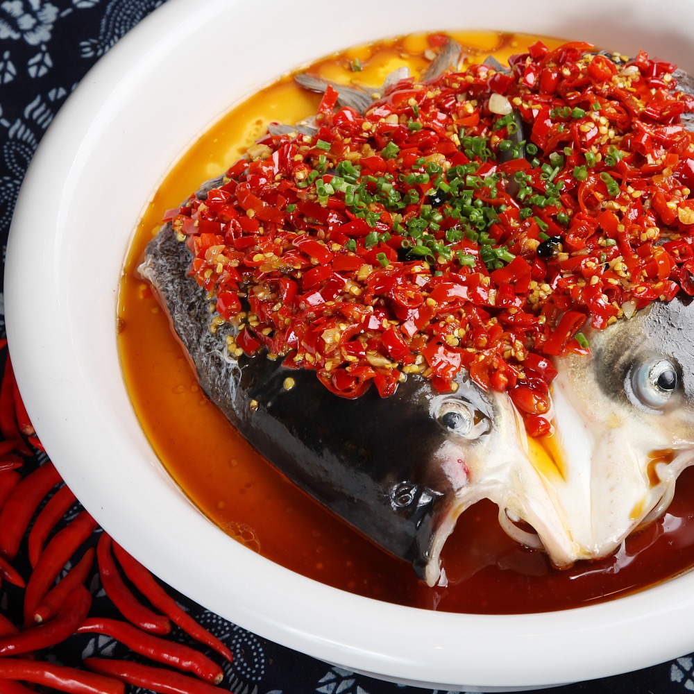 其实剁椒鱼头的做法并不算非常复杂。将腌制过的剁椒淋在新鲜白嫩的鱼头肉上蒸熟,令鱼的鲜味和剁椒的辣味融合得恰到好处,鱼肉入口即化,鱼皮软糯滑腻,鲜辣之余,又带着一丝略甜的回味。