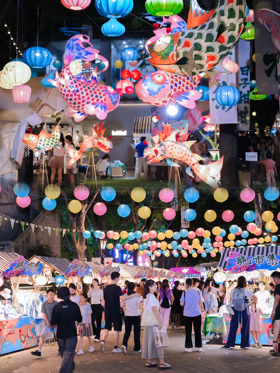 Whether it' colorful small lanterns, fish lanterns of different shapes, or unique giant hot air balloon lanterns, you can see them all in the "Xiao Market".
