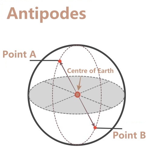 The two places also have a 12-hour time difference and opposite seasons. In geography, these two points are called "antipode".