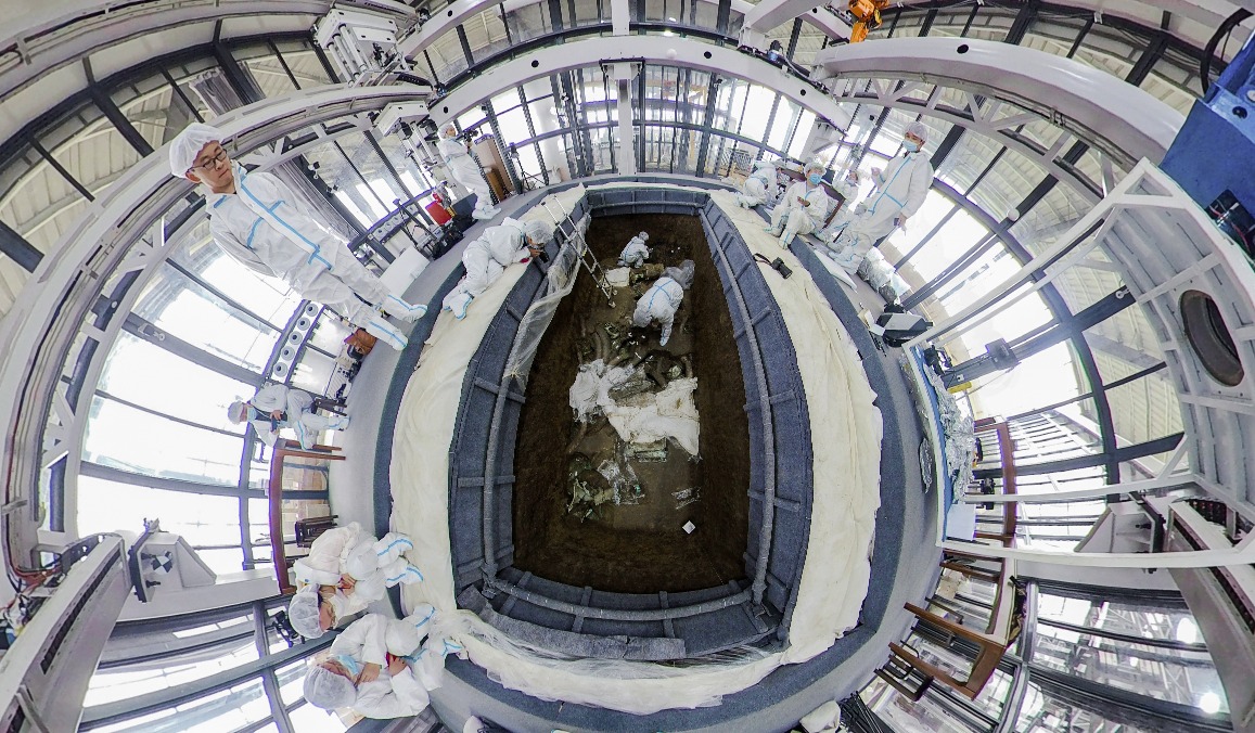 四川三星堆考古應用大量科技手段,恆溫恆濕的工作艙看起來好像一個「太空艙」。(圖片來源:視覺中國)