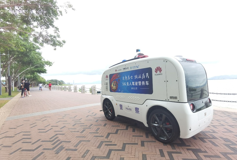 除了公交車外,警務車已於2020年中在深圳灣公園展開無人駕駛巡邏任務。南山公安分局於深圳灣世界之窗打造5G應用警務室自動駕駛,在深圳灣公園進行5G無人駕駛警務車巡邏,車上有警務人員執勤,但沒有人負責駕駛,駕駛任務由智能自動感應器負責。無人駕駛巡邏車由南山公安分局和華為技術有限公司、中國移動、新石器慧通(北京)科技有限公司聯合推出,在深圳灣公園試行。