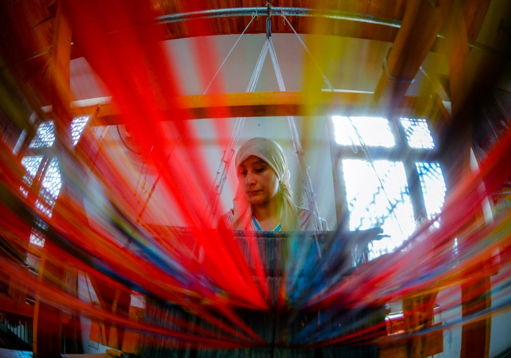 現代織機解決了產量難題,令新疆打造艾德萊斯產業鏈成為可能。一台織機每天能加工3-4匹絲綢,一個工人能夠管理2台織機,每天的產量相當於純手工製作的6-8倍。雖然機織絲綢不及手工製作的精美,因為價格低廉,花樣繁多,受到歡迎。