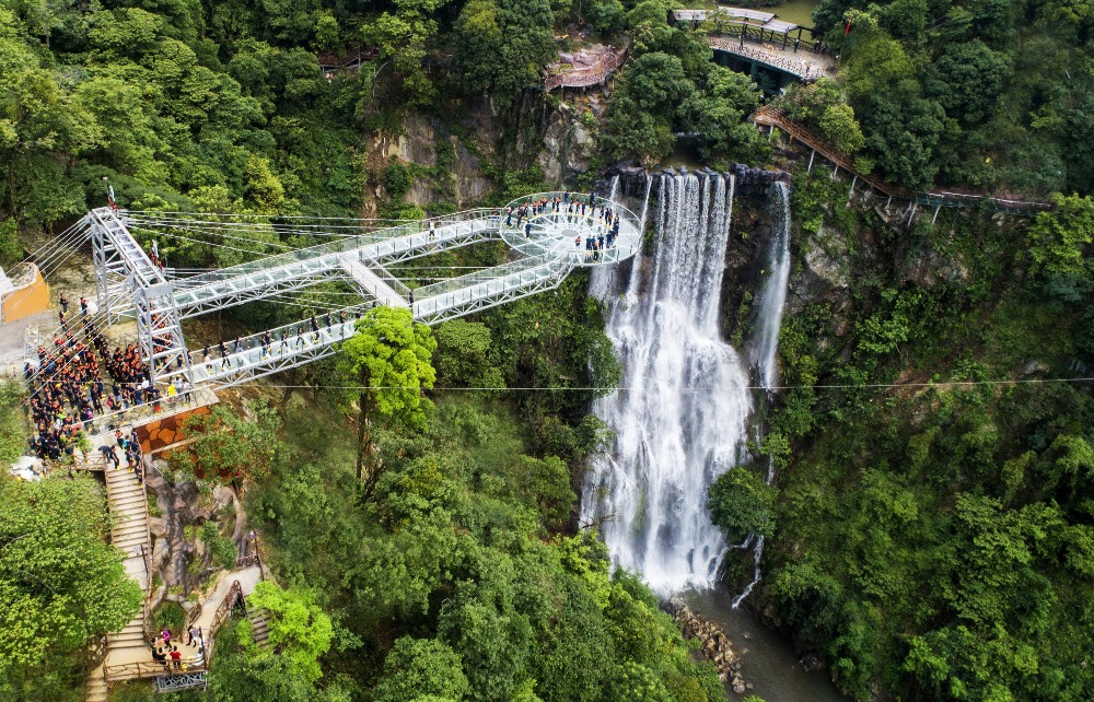玻璃景觀的興起,可能與張家界大峽谷那座著名的玻璃橋有關。這座2016年建成的玻璃橋,橫跨大峽谷,橋面與谷底距離約300米,被CNN列入世界上11座最壯觀橋樑之一,吸引無數遊客。官方命名「雲天渡」可謂名副其實。