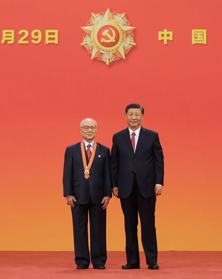 作曲家呂其明由中共總書記、國家主席習近平親自頒授「七一勳章」。(網上圖片)
