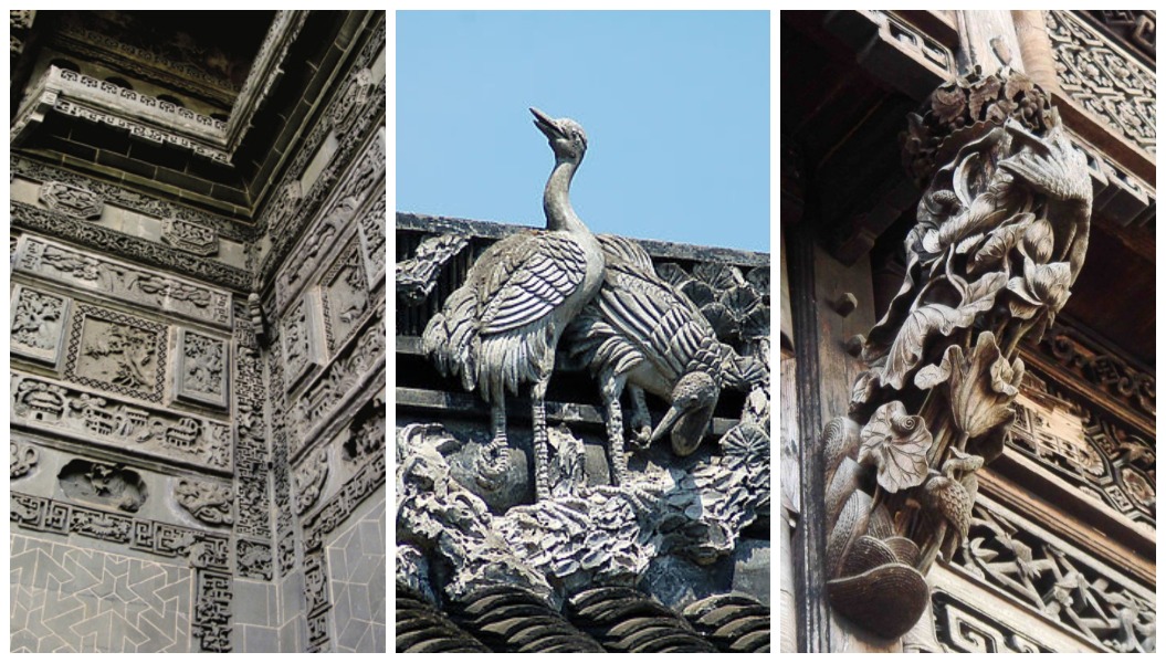 素來有句話形容徽派建築,那便是「無宅不雕花」,凡是有徽派建築的地方,都能看到巧奪天工的三雕藝術。徽州三雕是徽文化中濃墨重彩的一筆,其「三雕」指的是磚雕、石雕、木雕3種民間雕刻藝術,以安徽績溪、歙縣(「歙」粵音:攝)、黟縣(「黟」粵音:依)及江西婺源的制式最為典型,保存得亦相對較好。