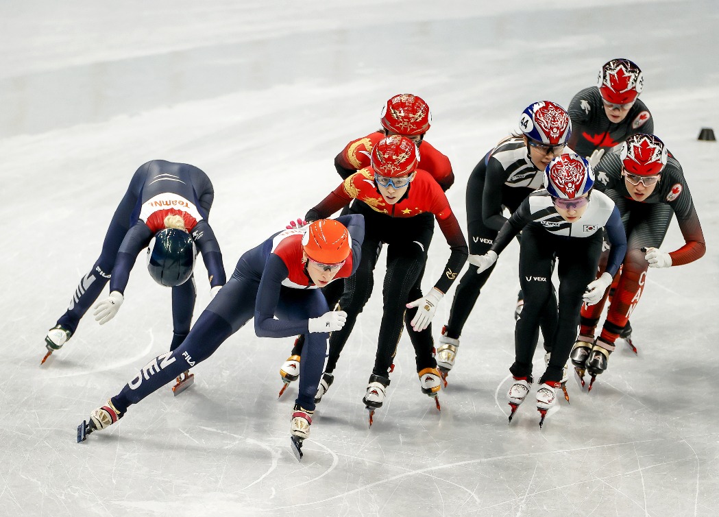 【短道速滑 女子500米 中國隊第四名】中國隊選手張雨婷在短道速滑女子500米A組決賽中成績位列第四,意大利名將方坦娜(Arianna Fontana)衛冕該項目冠軍。