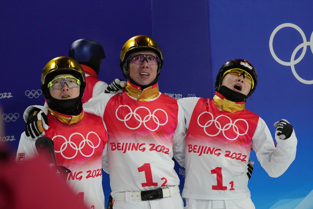 【自由滑雪男子空中技巧 中國隊奪金】北京冬奧會自由式滑雪項目在張家口賽區雲頂滑雪公園上演空中技巧男子組決賽。在決賽第2輪,中國選手齊廣璞做出完美動作,以129分獲得金牌,四次征戰冬奧會終於如願奪金,16年的堅守終於圓夢。齊廣璞的這面金牌也是中國代表團在今屆冬奧會的第7金。