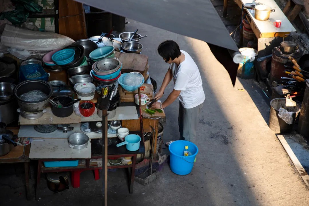 十多年來,萬佐成每天上午4點準時起床,用柴木給煤爐生火,把一個個攤子準備就緒。不多久,病患家屬們提着蔬菜肉類,陸陸續續來到這裏做飯。