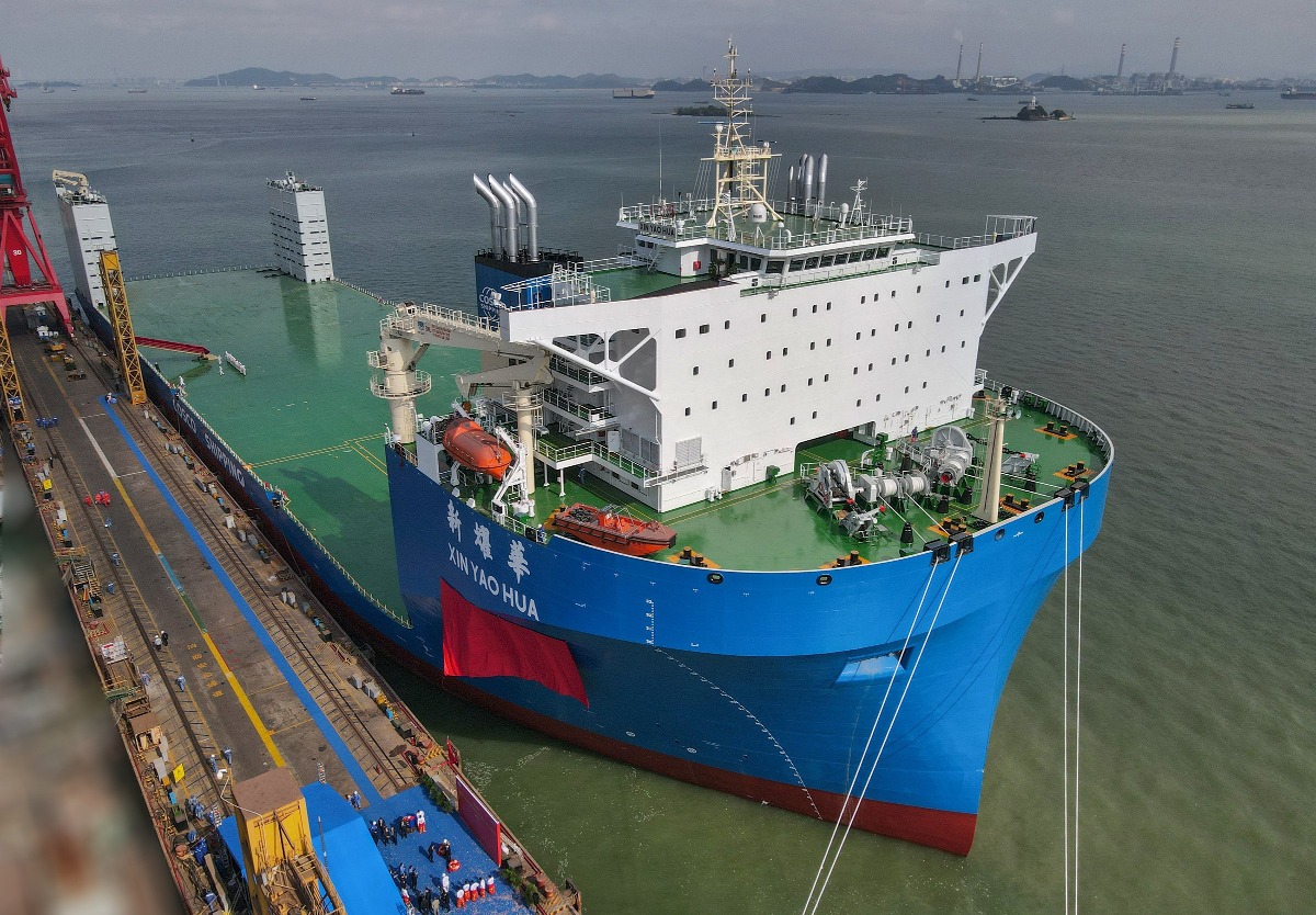 這個名為「新耀華號」的半潛船,是中國船舶集團廣船國際、為中遠海運特殊運輸股份有限公司建造的8萬噸半潛船,被稱為「海上大力神叉車」。以負載重量計,這艘船雖然不及廣船國際於2016年建造的國內最大半潛船「新光華號」,但智能技術方面卻有重大突破。