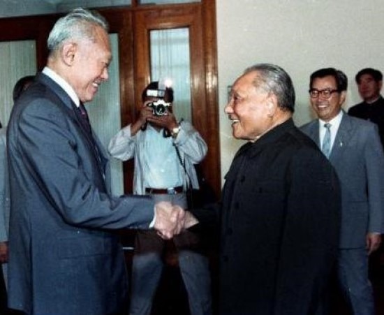 1978年鄧小平訪問新加坡,當時在李光耀的管治下,新加坡各方面都發展迅展。他更對鄧小平坦言,新加坡華人多是來自中國廣東、福建的不識字苦力的後裔,而中國大部分國民都是有學識的文人或官家後裔,因此預言中國未來會做得更好。同年底改革開放,後來鄧小平曾多次表示改革開放借鑒「新加坡的經驗」。