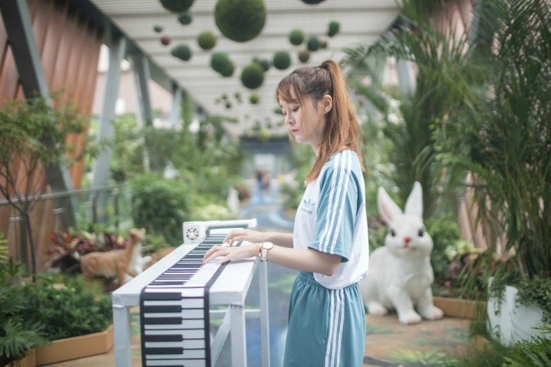 同時,阿君又開始像以前一樣,在網絡上直播自己的演奏片段。只不過,以前她只能待在狹窄的宿舍演奏。如今,有了自己研發的攜帶式折疊鋼琴,她就能到各種各樣的戶外及熱門打卡點演奏。觀眾一邊欣賞音樂,一邊看美景,觀看體驗好了,鋼琴的銷量自然也提升了。