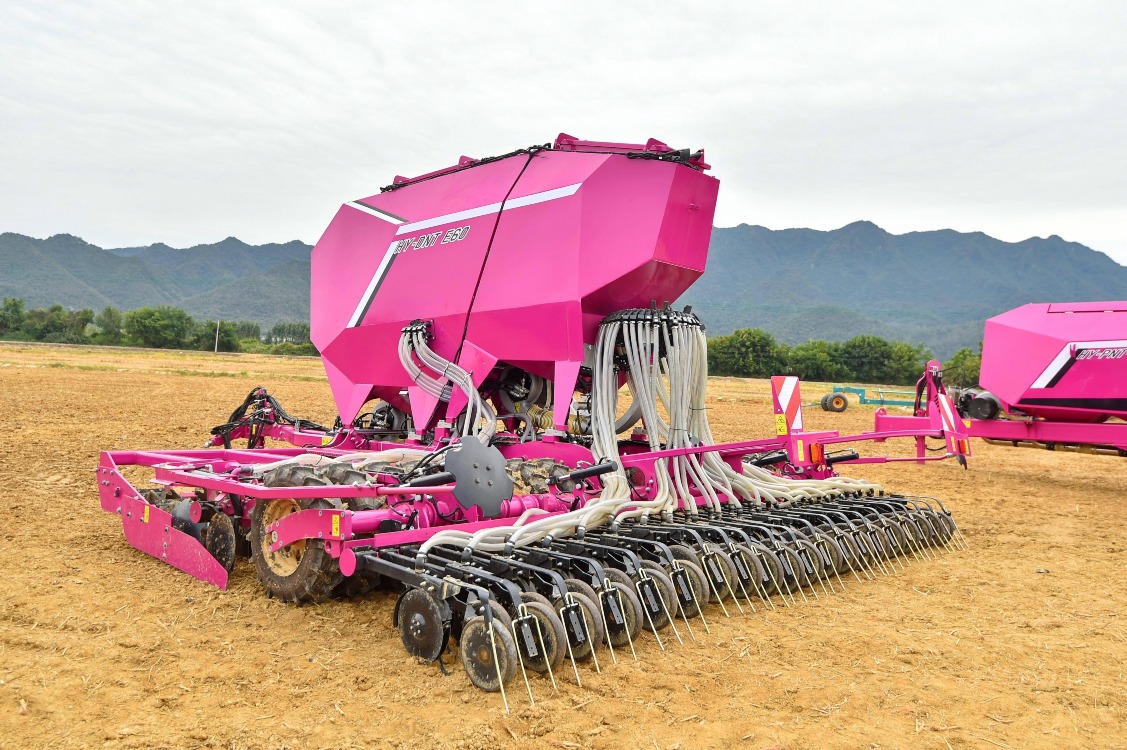 基於衛生導航、AI自動識別、物聯網等無人駕駛操空,能精準播種。圖為條播機。(網上圖片)