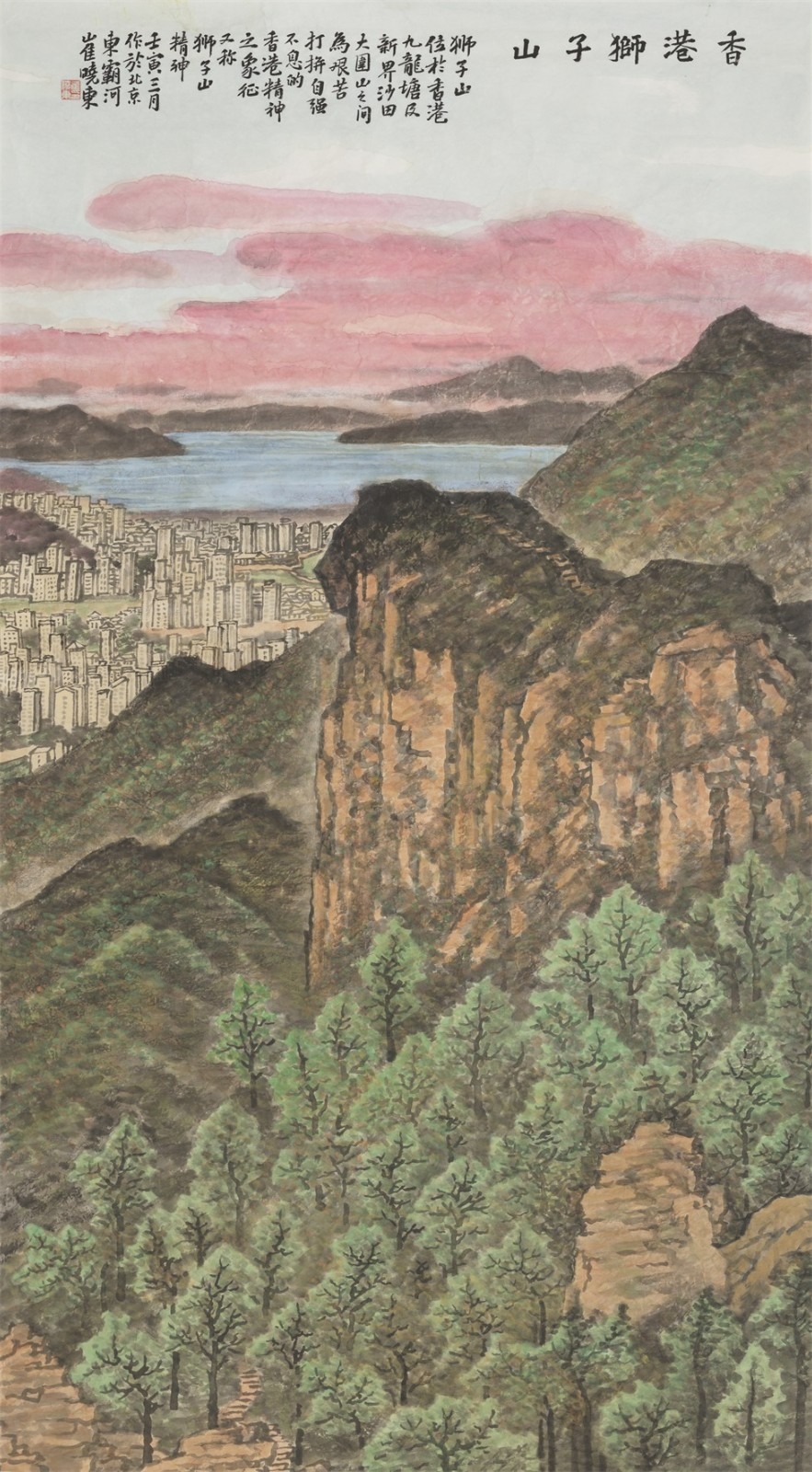 參展美術家代表崔曉東在展覽開幕式上亦有分享創作靈感,他為畫展專門創作山水作品《香港獅子山》。崔曉東稱,在香港,獅子山被賦予刻苦耐勞、同舟共濟、永不言敗的拼搏團結精神,憑借這股精神,一代香港人用青春熱血搏得香港經濟的騰飛。