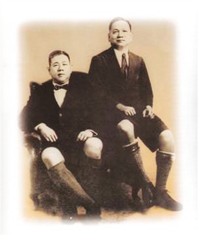 圖為胡文虎(右)和胡文豹(左)兩兄弟,哥哥胡文虎年輕時被父親送返家鄉福建讀書,但他只讀了兩、三年,中學未畢業便回到仰光,弟弟胡文豹則留在緬甸接受西方教育。由於胡文虎個性外向進取,胡文豹則較內向,較著重細節與管理,因此家族生意時,主要是兄主外、弟主內,互補長短。(網上圖片)