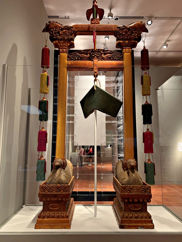 特磬和鎛鐘是儒家禮儀使用的樂器。清代皇帝為鞏固統治,推崇儒學,措施之一便是鑄造特磬和鎛鐘。此磬音律為「黃鐘」,是十二律中第一律,用於農曆十一月舉行的儀式。樂章完結前,會敲擊特磬一次,以示收結。