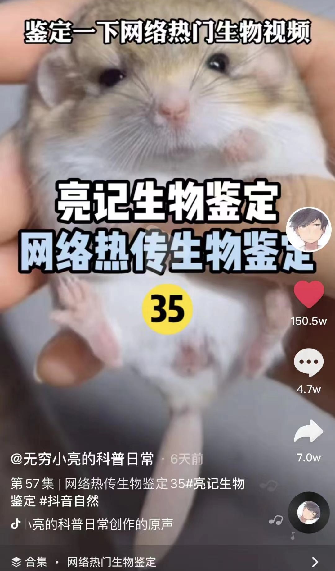 「兩年前註冊了抖音帳號,改變了我的人生軌迹。我是科普工作者里的幸運兒。不註冊抖音,就不會有如此多的人知道我。」「無窮小亮」這樣說。他現在已經成為《博物》雜誌副主編、《中國國家地理》融媒體中心主任、中國科普作家協會生態專委會委員。