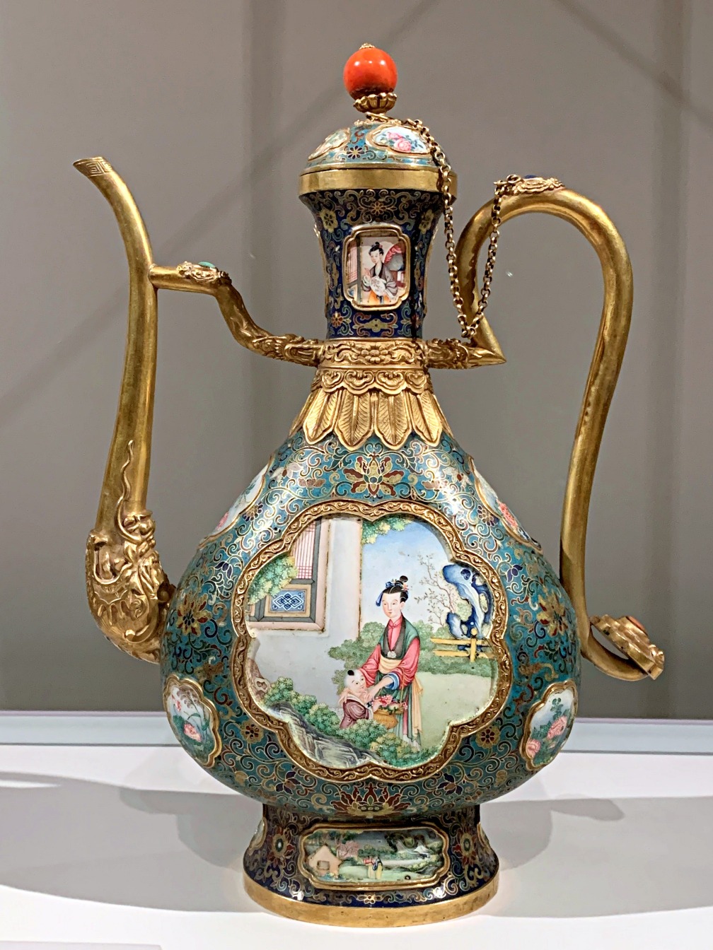 乾隆時期,琺瑯器的製作大膽創新,一件器物可以同時採用掐絲琺瑯與畫琺瑯兩種工藝。