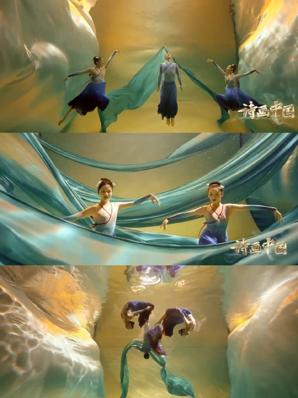 名畫《水圖》畫出了水的12種形態,而水下舞則以舞為筆,勾畫出不一樣的水中世界。《水圖》舞蹈因此登上央視節目《詩畫中國》,而且大獲好評。