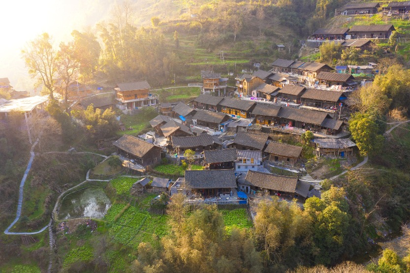 「騎在雄鷹背上」的德夯苗寨 依懸崖而建如隱世桃源