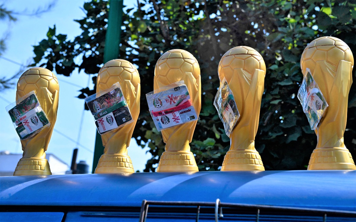 據義烏體育用品協會估算,中國義烏製造的產品,幾乎佔到整個世界杯周邊商品市場份額的70%,包括世界杯32強的旗幟、加油的喇叭、哨子,以及足球、球衣、圍巾,還有「大力神」杯的擺件和攬枕等等。