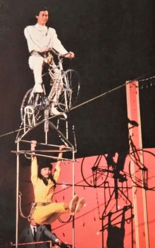 還有是,1981年台慶由楊盼盼和鄭少秋合作表演高難度的「單車行鋼線」,又是看得手心冒汗的驚險演出。