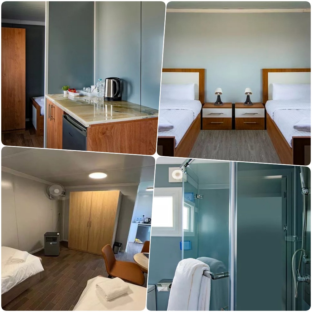 承建的是位於江門鶴山工業城的廣東中輝綠建移動房屋科技有限公司,有豐富的製造移動房屋的經驗,所建造的貨櫃箱移動房屋酒店,每個房間佔地18平方米,大約只有194呎,然而是麻雀雖小,但五臟俱全。