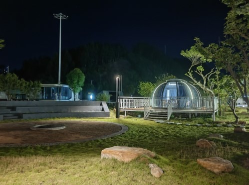 貨櫃箱外,江門亦特別設計了20套精美的可移動房間,取名為「星空房」。「星空房」外形為半球體設計,四周全都以玻璃建造,可用作卧室,或作為餐廳或會議之用。玻璃內四周有窗帘,天花玻璃窗可升可降,令空氣加快流通,有迅速降溫之效。