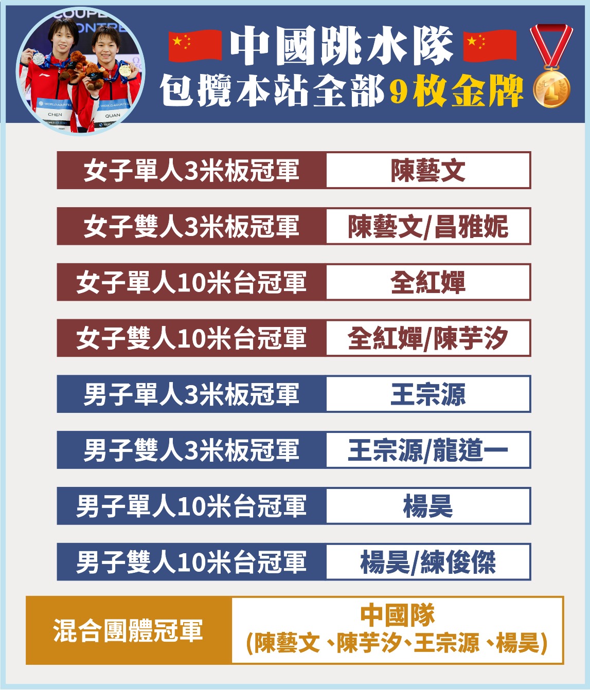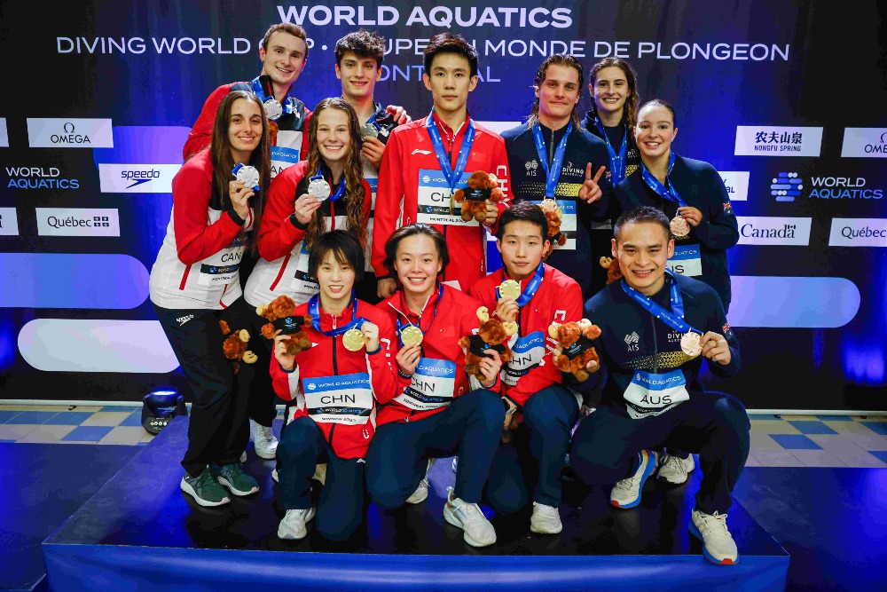 5月8日,2023年國際泳聯跳水世界杯蒙特利爾站比賽結束,中國跳水「夢之隊」橫掃9枚金牌,是繼西安站之後再次包攬全部單項的冠軍。