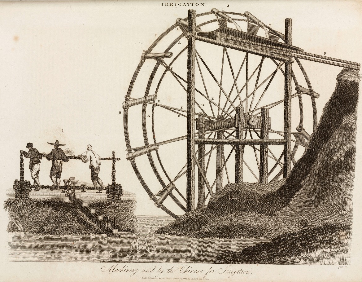 小滿過後,江南農田需要蓄水,農夫全體出動踩水車,將河水引入田地,保證莊稼茁壯生長。