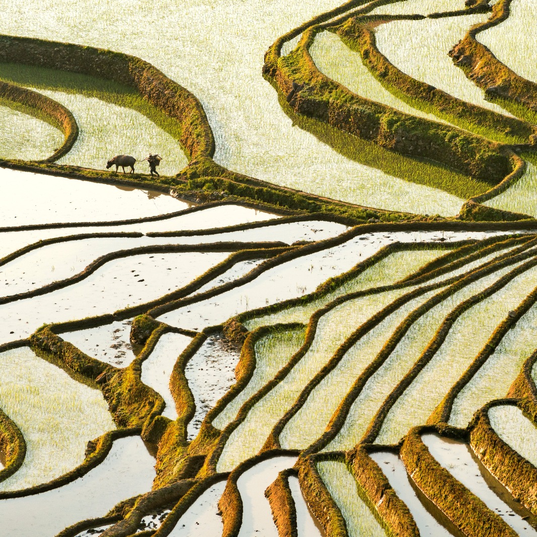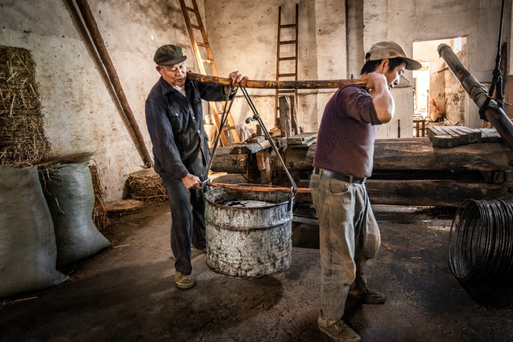 小滿時節,油菜花盛開,農夫採下油菜籽,送到榨油坊,製成油菜籽麩餅,放入用油車中,用鐵錘或木樁撞擊油車,壓出香噴噴的菜籽油。不過隨着現代工廠的出現,油車已很少見到,古法榨油技藝也被列入非物質文化遺產。