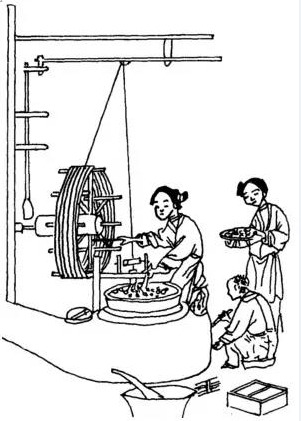 第三車是繅絲車,即是從蠶繭中抽取蠶絲的工具。