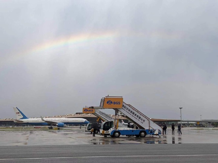 耶倫在7月6日下午4時半抵達北京,這是當地氣溫連續第二天超過40度。雖然耶倫一行人迎來北京的酷熱天氣,幸好在其專機降落前,剛下了一場大雨,正好給他們稍稍降溫。