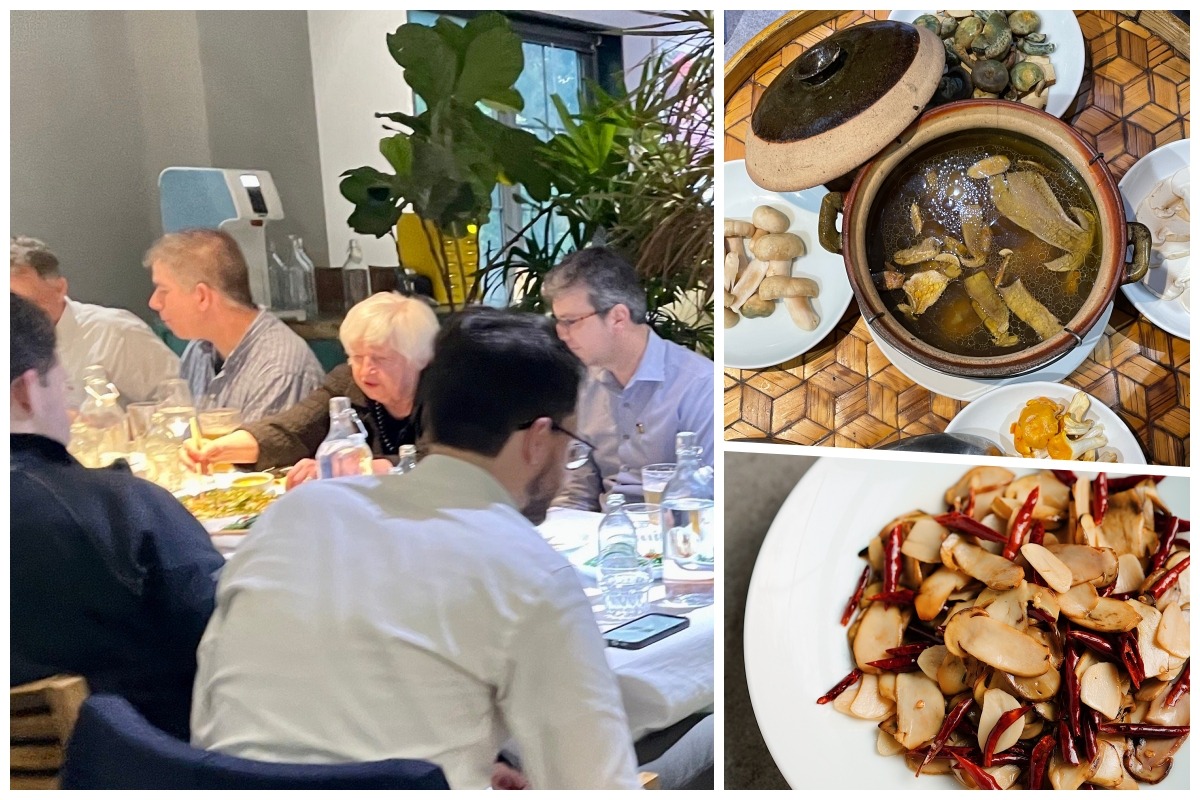 據知菜館位於北京三里屯,鄰近大使館區,不少各國駐華使館人員都會經常幫襯。而耶倫一行人昨晚的餐單,所點選的都是家常的地道雲南菜,包括香草烤魚、薄荷牛肉捲、涼米線、酸菜炒洋芋片、炒牛肝菌、大理雕梅小排、騰沖大救駕、清炒絲瓜等。