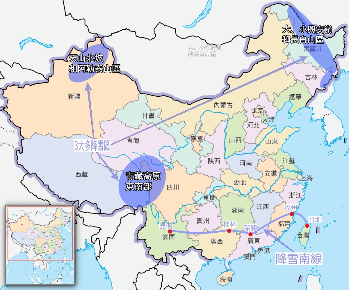 每當寒潮來襲,媒體少不了各地降雪的報道。大家關心這些消息之餘,是否知道中國甚麼地方最多雪,雪花最南可以飄到甚麼地方,又有哪個省不下雪呢?