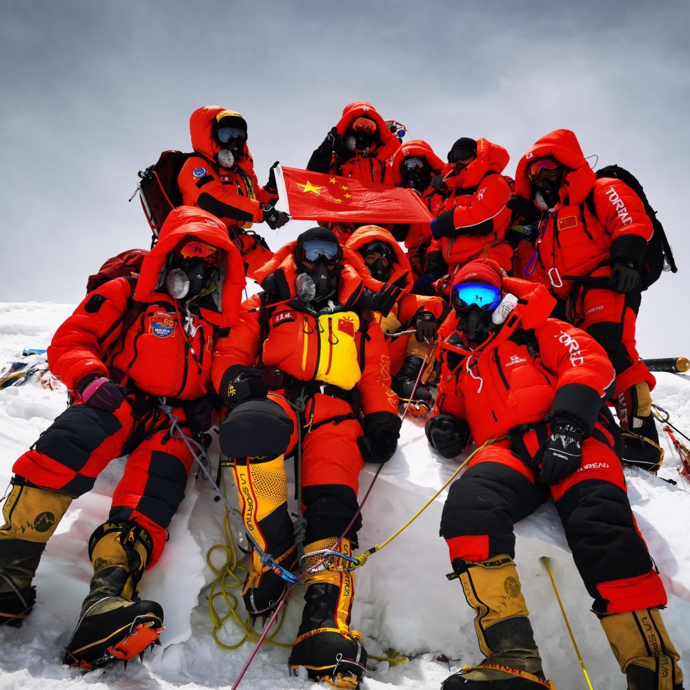 隊員們背着超過15公斤的物資和測繪工具、穿戴幾公斤重的登山靴,每一步都異常艱難。尤其到了珠穆朗瑪峰海拔7,000米以上的地方,每走一步,都要休息半分鐘;每次呼吸,喉嚨和胸口都會劇痛。最終,5月27日上午11點,8名測量登山隊員經過9個小時的攀登成功登頂。