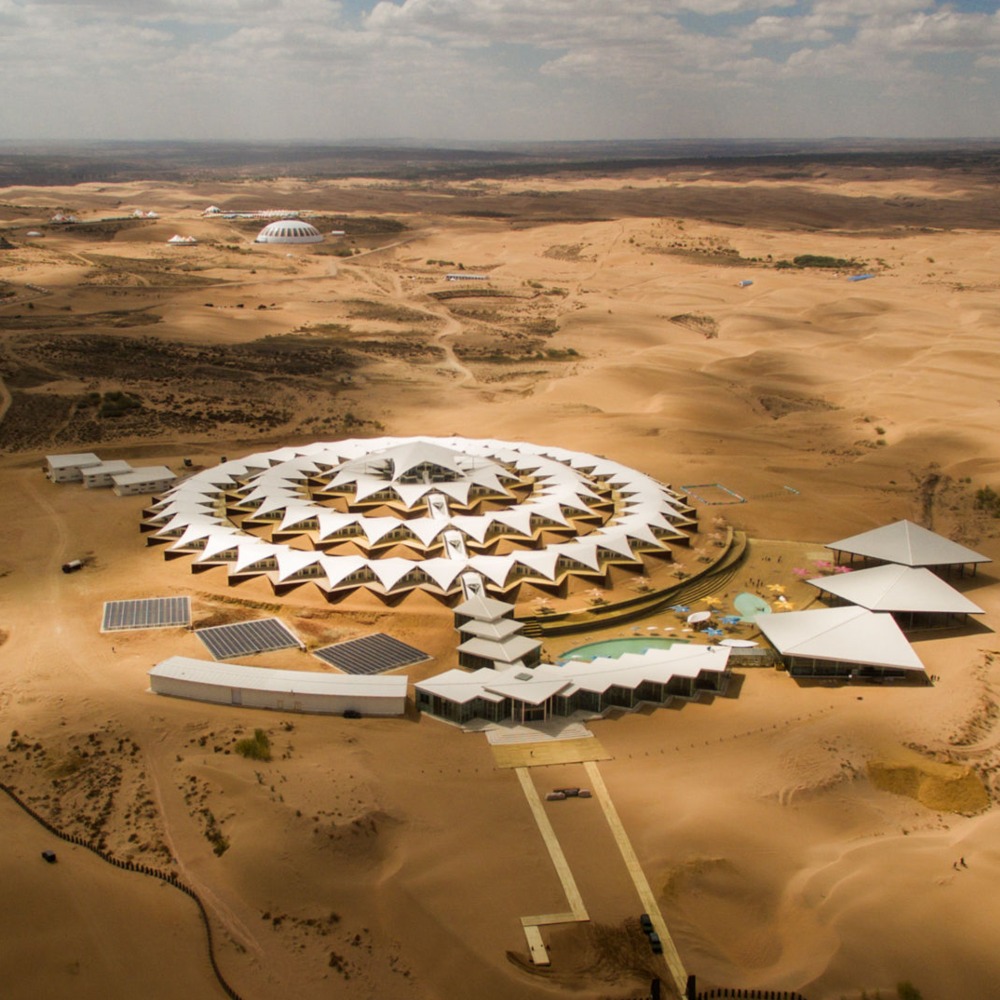 目前,蓮花度假酒店更是世界上唯一一座不用一磚一瓦、鋼筋和水泥建造的環保綠色建築,既華麗美觀又不失生態保育意識,在不破壞沙漠天然生態環境的情況下,能為到内蒙古旅遊的人們提供一個極具舒適和享受的沙漠住宿和娛樂空間,將人類與自然連接在一起,進一步促進響沙灣沙漠可持續旅遊的發展。