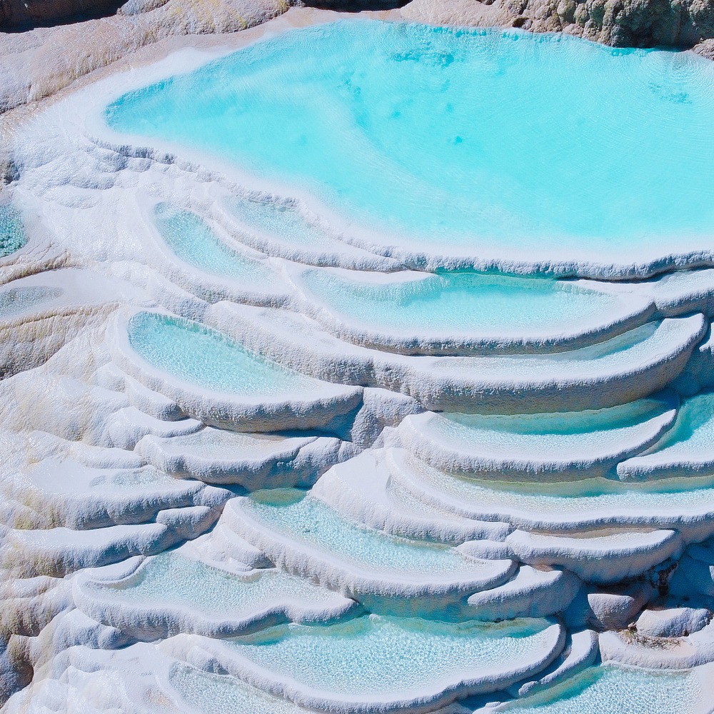 雲南省擁有許多天然美景,位於香格里拉境內,處於海拔2,380米的神仙聖地「白水台」便是其中之一。梯田狀的乳白色流水台在陽光折射下呈現淺藍色,仿如靜止的攝影作品,成為近年熱門秘境。有人甚至把白水台的風景堪比被列入世界文化遺產之一的土耳其「棉花堡」。不過白水台面積相較下細小很多,佔地面積只有約3平方公里。