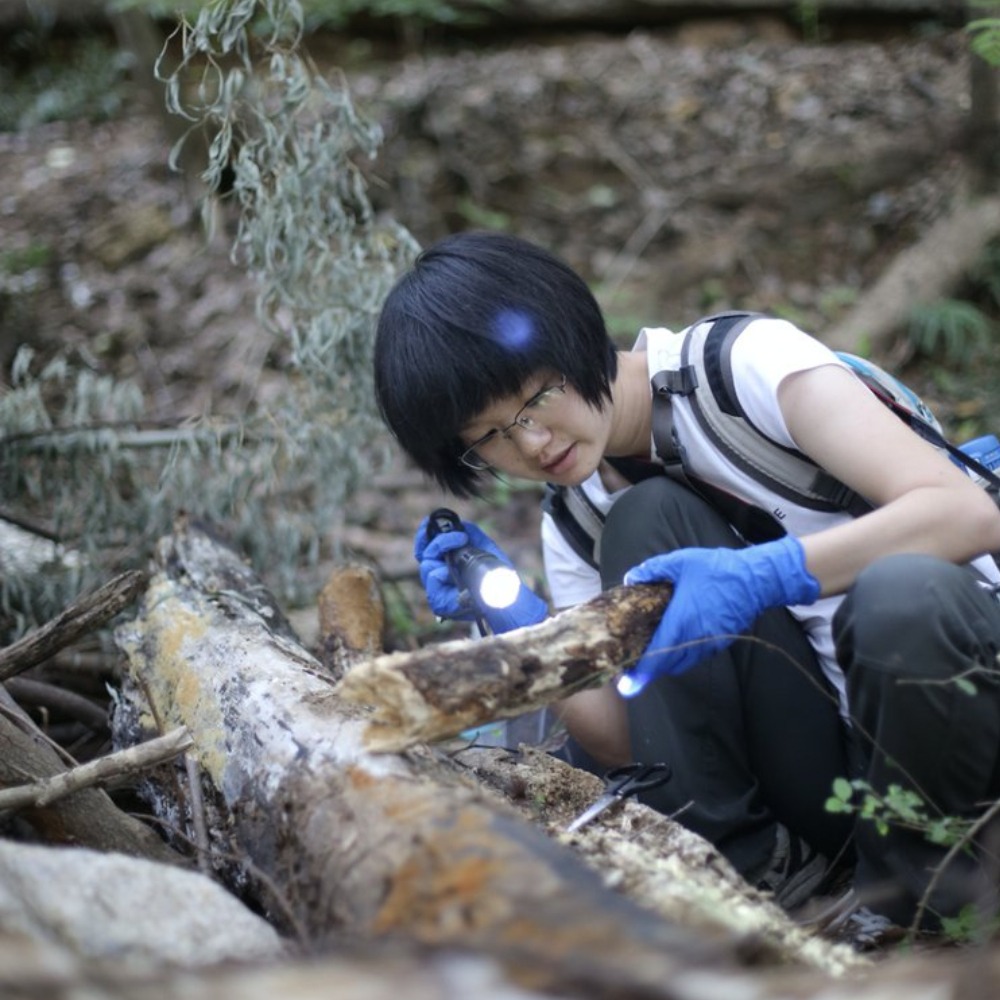 其後,周晴烽就踏上「尋寶」之旅,常年穿着防水風衣,帶上微距鏡頭和相機四處觀察。朽木、腐葉、石堆、泥塘甚至動物糞便,她都會仔細辨認,從中尋找自由生長的菌類。