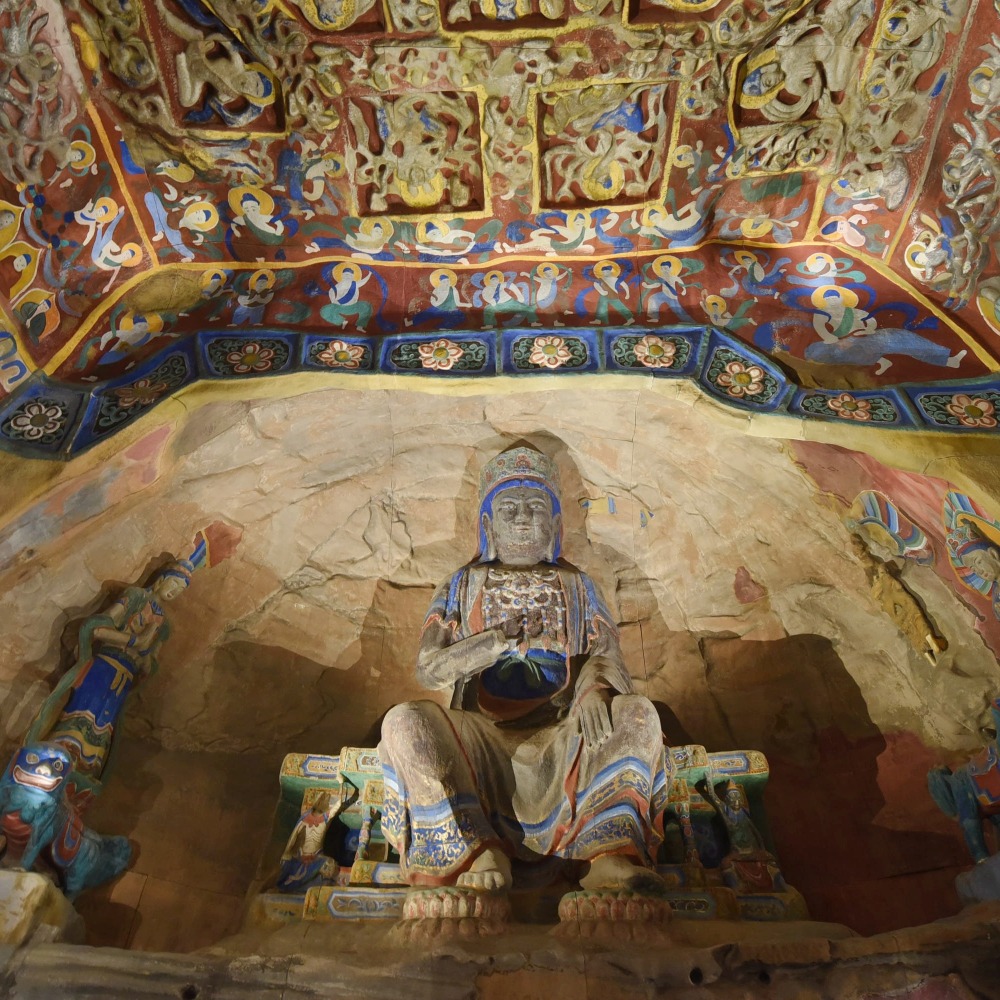 雲岡石窟位於山西省大同市,開鑿於北魏時期,距今已有1,500年歷史。雲岡石窟依山開鑿,規模弘大,東西綿延約一公里。現存主要洞窟45個,附屬洞窟209個,佛龕約計1,100多個,大小造像59,000餘尊,雕刻面積達18,000餘平方米。