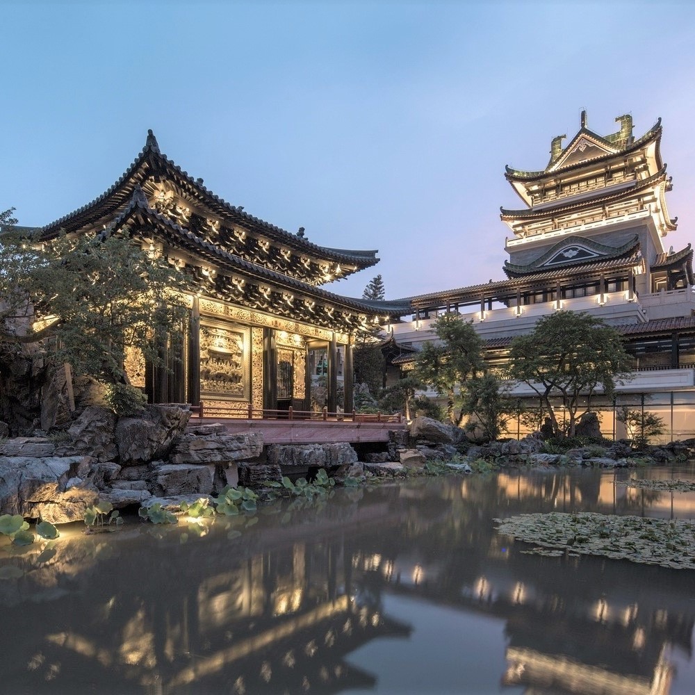 這園林當中的六組院落各有名號,分別為別院聲歌、普天歎曲、梨園鐘聲、銮輿載樂、吉慶別館、琼花暢曲,每院都代表了一個粵劇史上的經典。