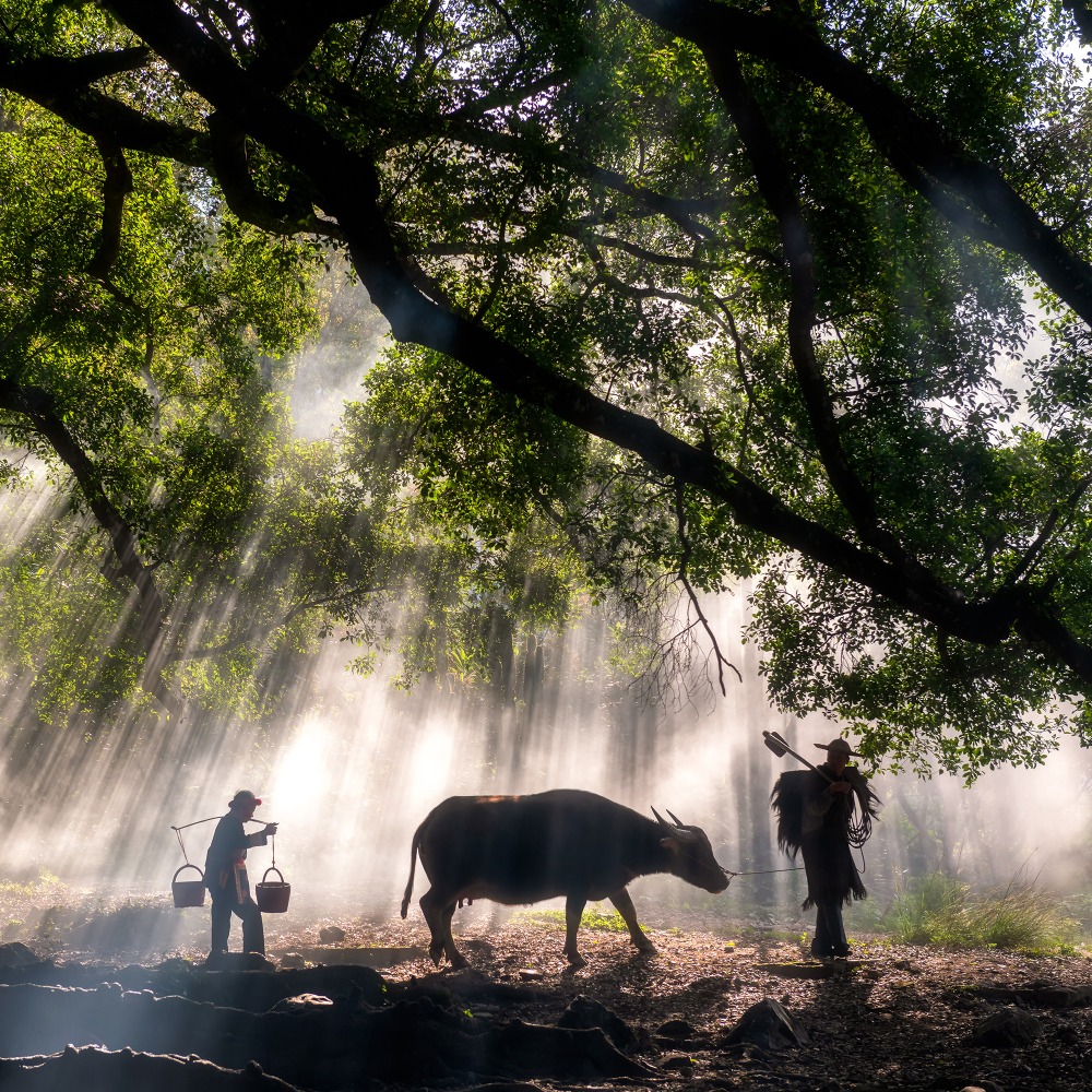 原來,每天早上,當地兩位農民會戴着斗笠、牽着溫順的大水牛,來到榕樹下。這對於楊家溪的農民來說,或許是生活日常,但在攝影師和旅客眼裏,卻是不可多得的「世外桃源」佳作。假如當日光線不佳或雲霧缺乏,旁邊還會有同伴幫方燒柴撥扇,自製人造煙霧,營造夢幻氛圍,務求讓現場每位攝影師的滿意而歸。這也成為當地農民的收入來源之一。