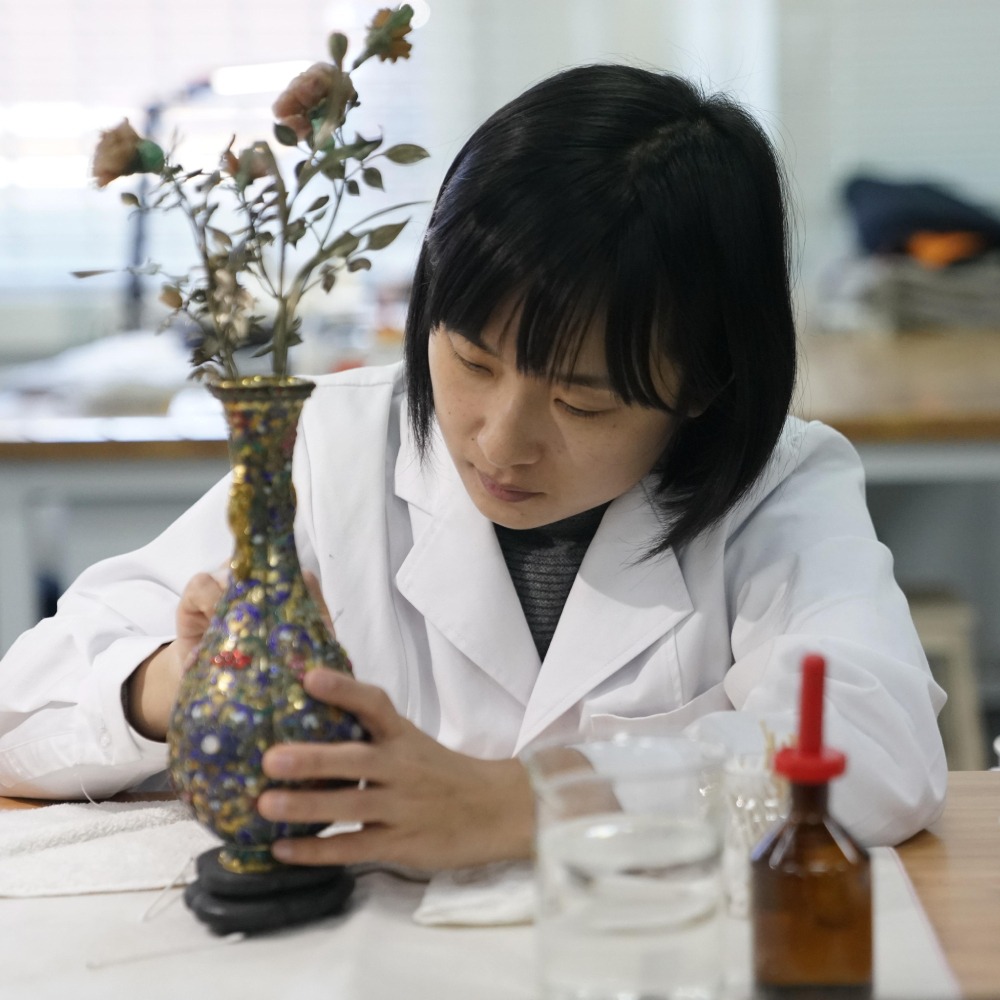 例如1987年出生的楊玉潔,6年前博士畢業後進入故宮,負責修繕瓷器。故宮裏有約36萬件陶瓷器,她的一雙手很修長,但只要仔細觀察就能看到有好幾處傷口,這是修瓷器留下的痕跡:長期接觸化學品,她必須經常洗手;瓷器碎片尖利,她的手難免被工具劃傷。