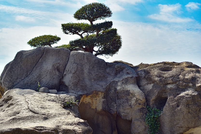 踏着轻松的步伐,转过郑成功雕像,会见到一边是壁立千仞,一边是礁石虎踞,眼前的印斗石犹如镇海帅印般矗立于波涛之上,长空下海鸥翻飞,涌浪奔逐。走在沙滩上,跳跃礁石之间,拾贝弄潮,远眺蓝天海色,近观高树藤蔓,鼓浪屿的海岛风情叫人流连忘返。