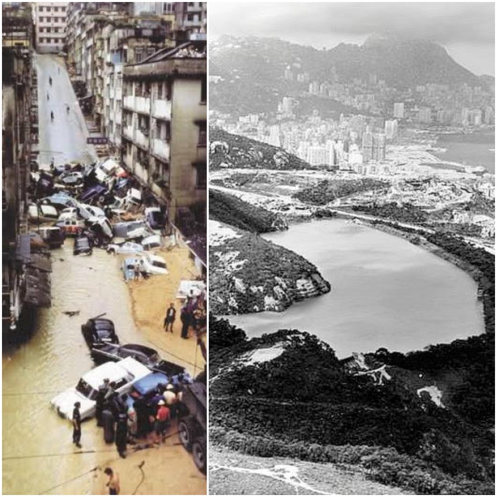 其中1966年6月12日清晨,香港在一小时内录得超过108毫米的雨量,北角山洪暴发,洪水从山上的赛西湖水塘涌至英皇道,大约50架停泊在斜坡的汽车被汹涌的潮水冲走,堆叠在明园西街,这一幕成为历史定格。