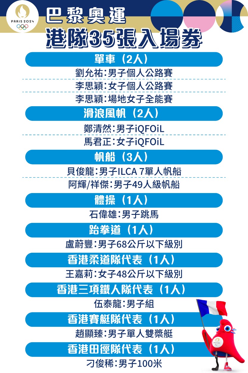巴黎奥运|港队35人参加13项目赛事 逾半首次亮相奥运舞台