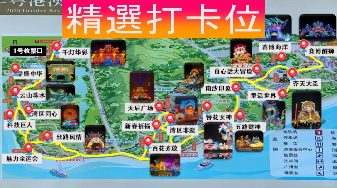 灯会以喜粤大道为轴,按“一轴五园区”,布局218组灯景,超10,000盏彩灯,串联五大特色灯会园区。三个旅游景区,又各有什么看点?