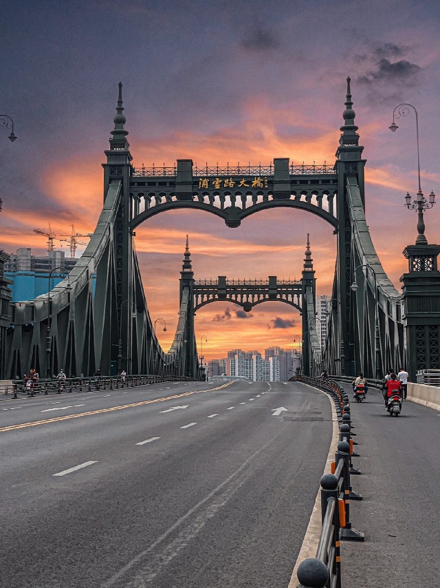 浦云路大桥于2020年6月落成,大桥横跨于南京城南河上,主塔采用古典建筑风格,乍一看犹如穿越回到19世纪的英国,心形拱顶与晚霞互相映衬,显得特别浪漫,吸引许多人到来打卡。